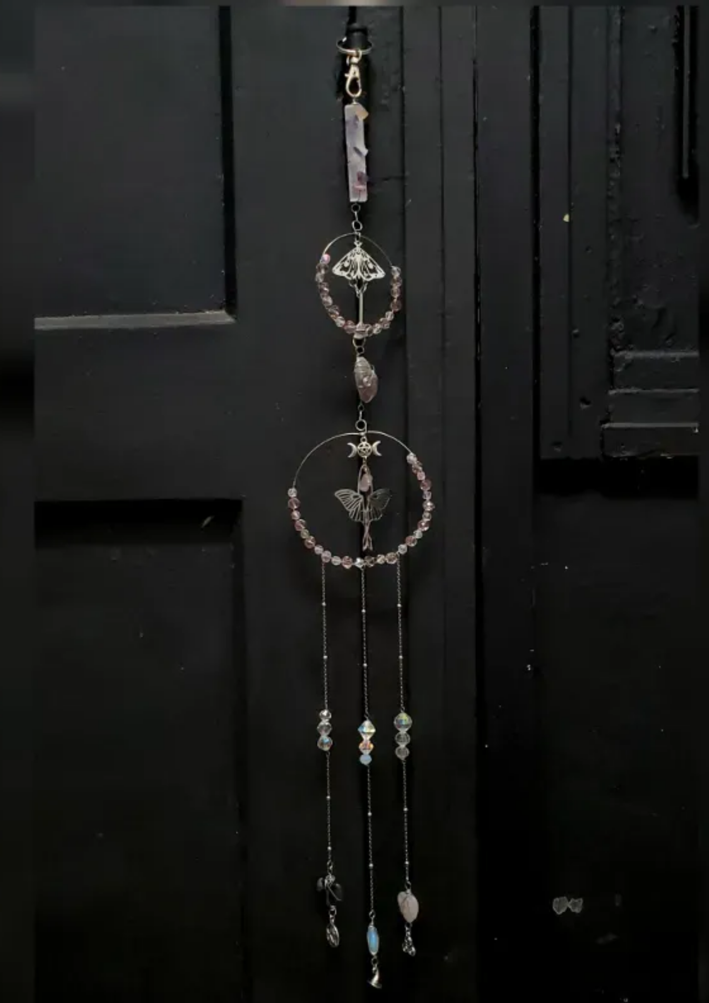 Colgante energético creado por pedido para armonizar, proteger o limpiar espacios. Se diseña en función de la intención específica del cliente y no existen dos iguales.