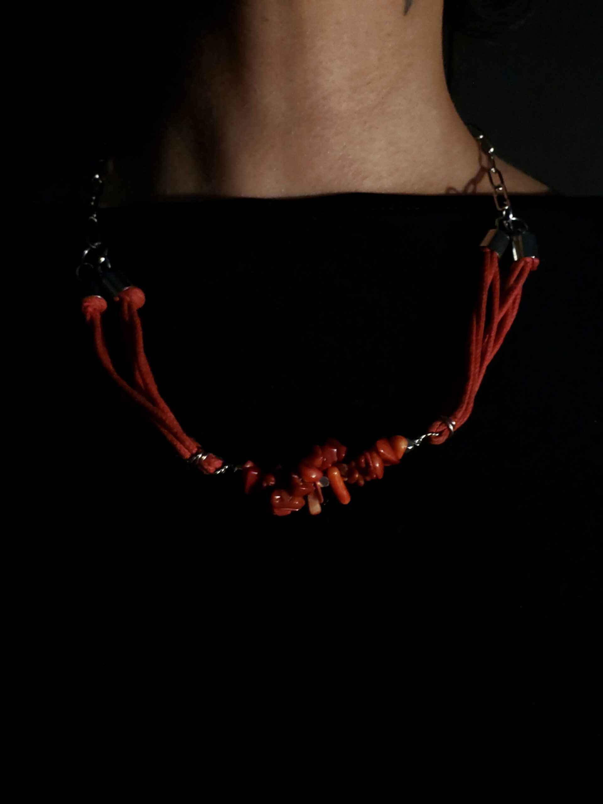 El collar trabaja sobre la presencia y la expresión de ese poder hacia el exterior: cómo te posicionas, cómo te muestras, cómo ocupas espacio.