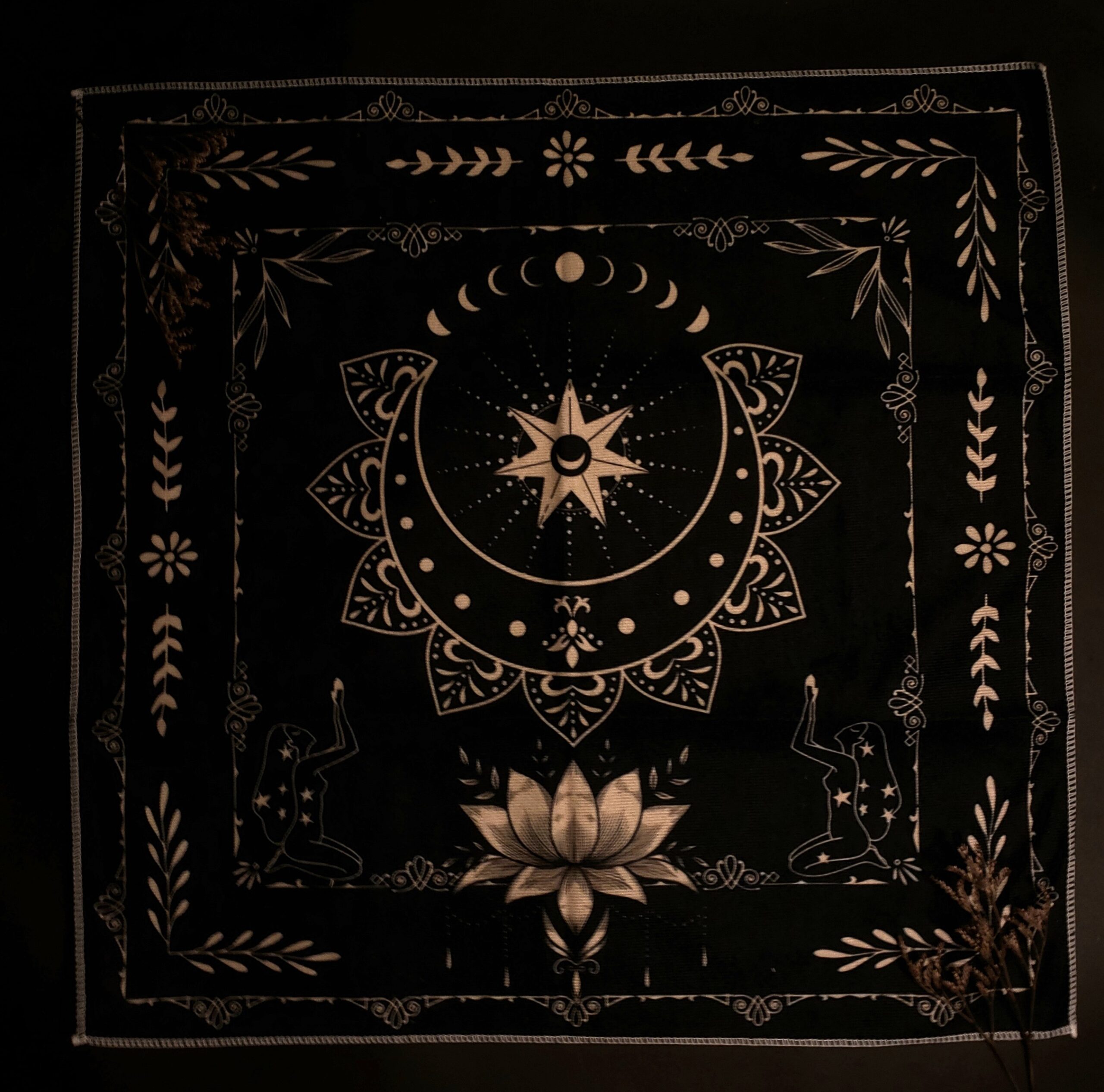 Paño de tarot Loto, ideal para tarot, rituales y altares, pensado para acompañar tus lecturas y prácticas espirituales.